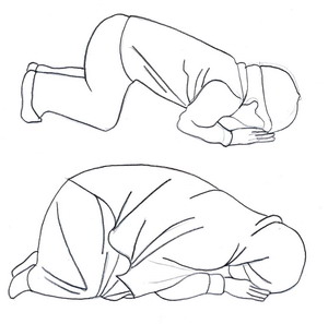 Baş eller arasına konarak, alın ve burun yere değdirilir.