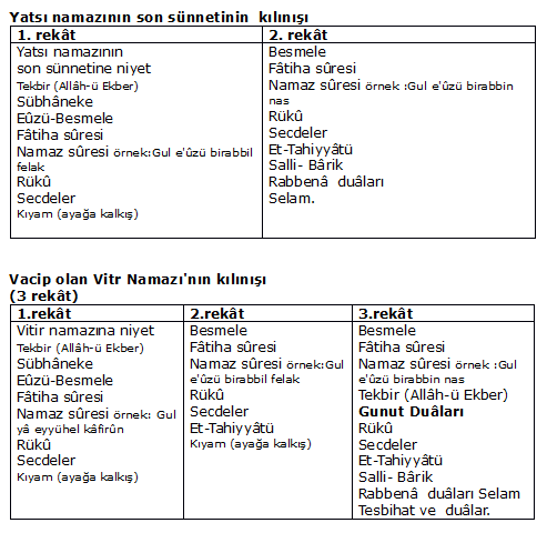 Yatsı ve vitir namazının kılınışı